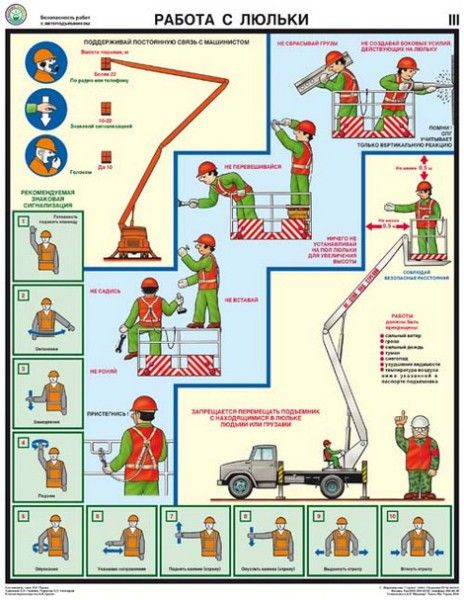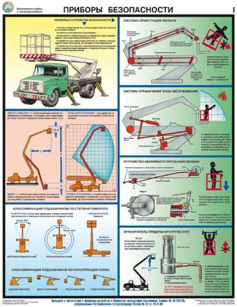 На плакате изображены различные ситуации, связанные с эксплуатацией автоподъемников, и указаны правильные действия персонала. Это включает в себя правила подъема и спуска, использование защитных средств, а также действия в случае возникновения аварийных ситуаций. Плакат также содержит предупреждающие знаки и символы, которые легко распознать и понять.