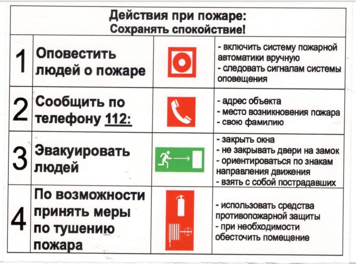 Действия при пожаре: Сохранять спокойствие. Наклейка 150х200
