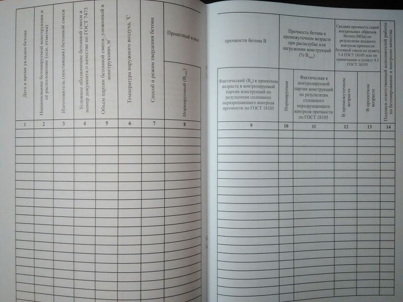 Журнал бетонных работ. Приложение Ф, СП 70.13330-2012