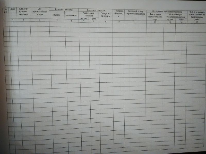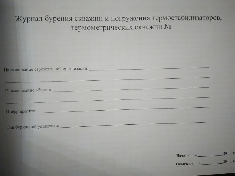 Журнал бурения скважин и погружения термостабилизаторов, термометрических скважин