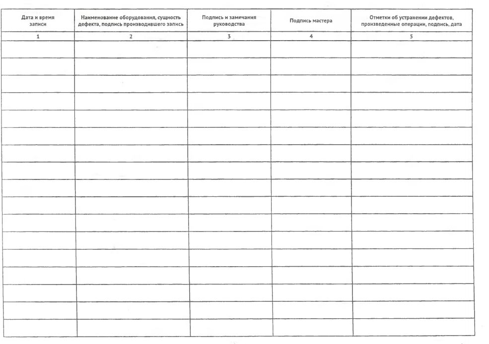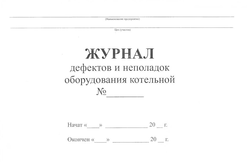Журнал дефектов и неполадок оборудования котельной