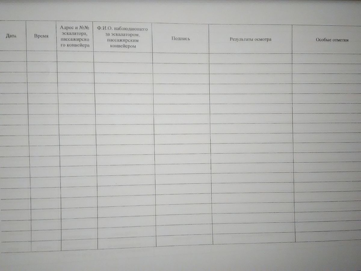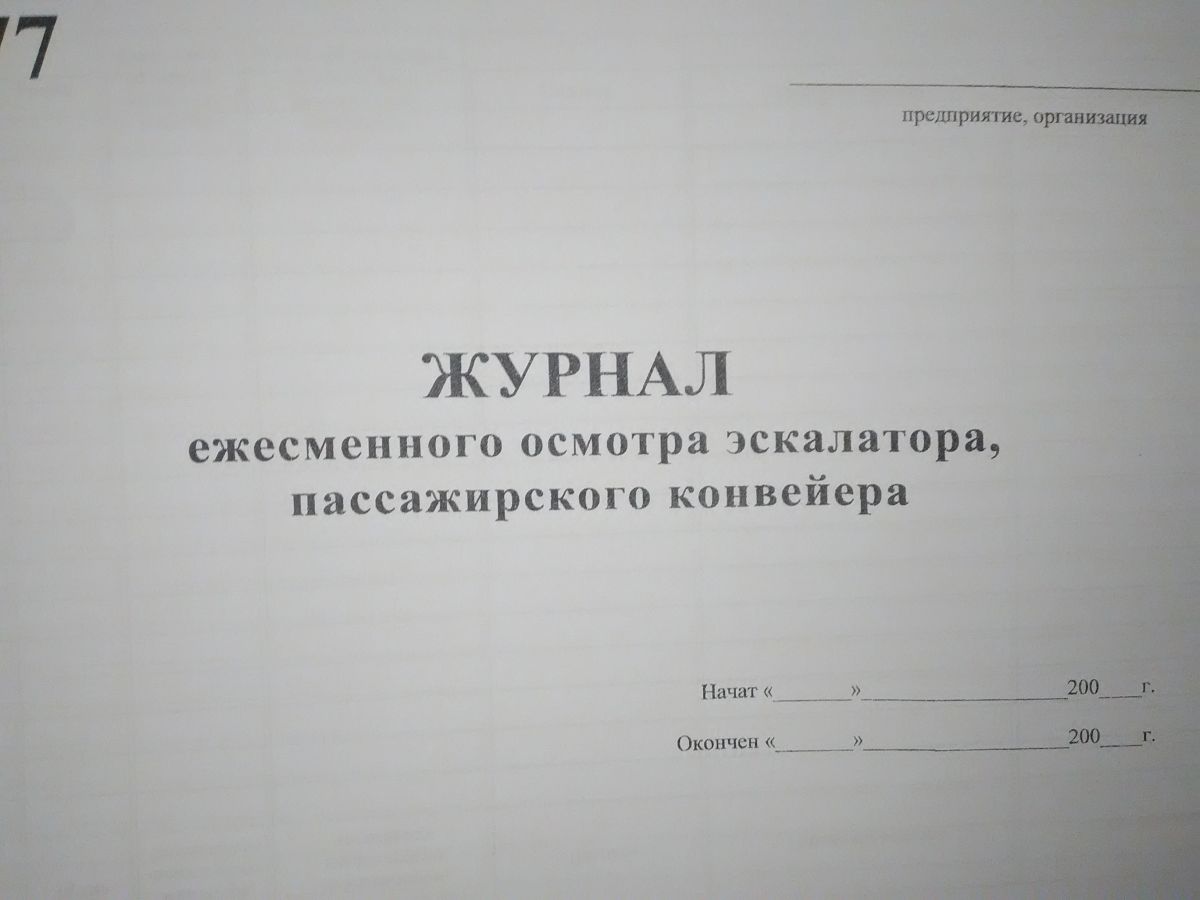Журнал ежесменного осмотра эскалатора пассажирского конвейера