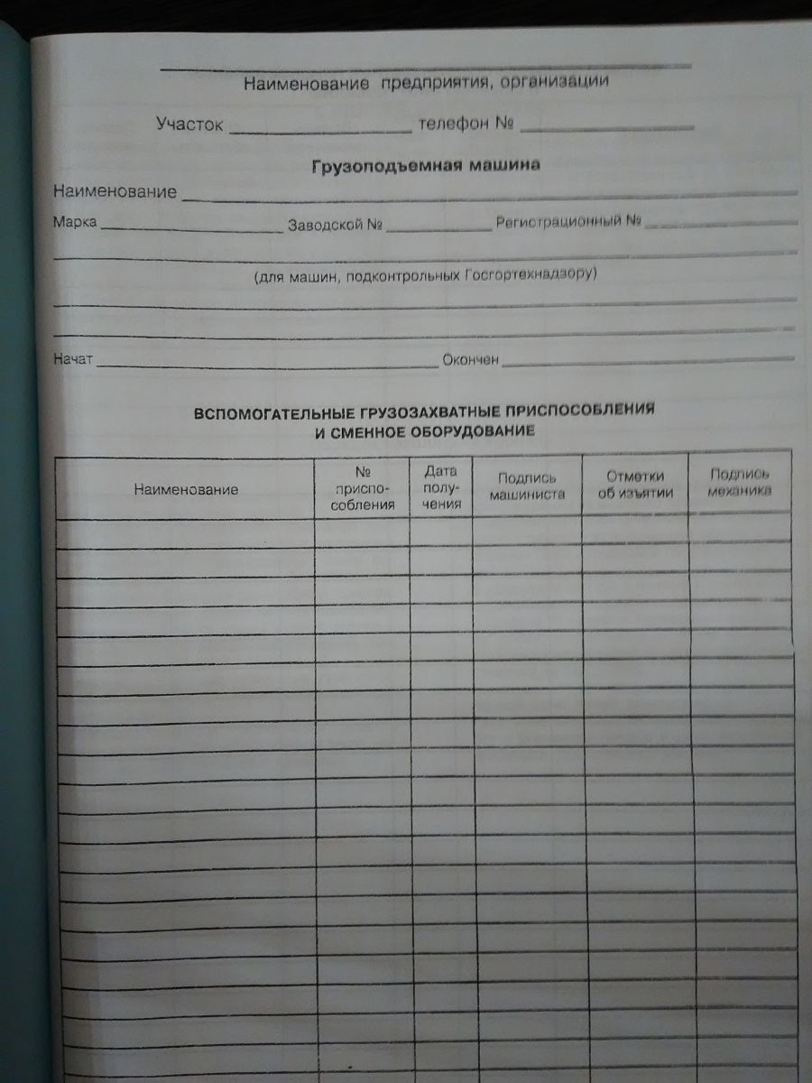 Журнал грузоподъемной машины