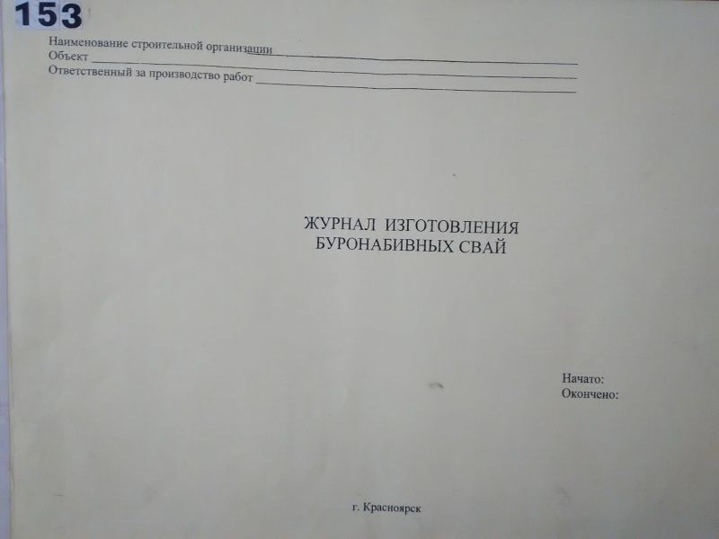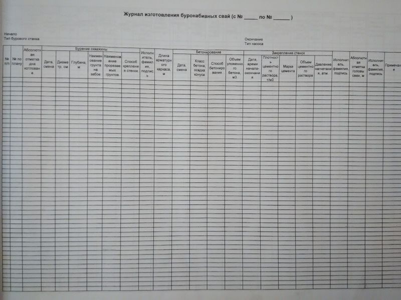 Журнал изготовления буронабивных свай. формат А3.