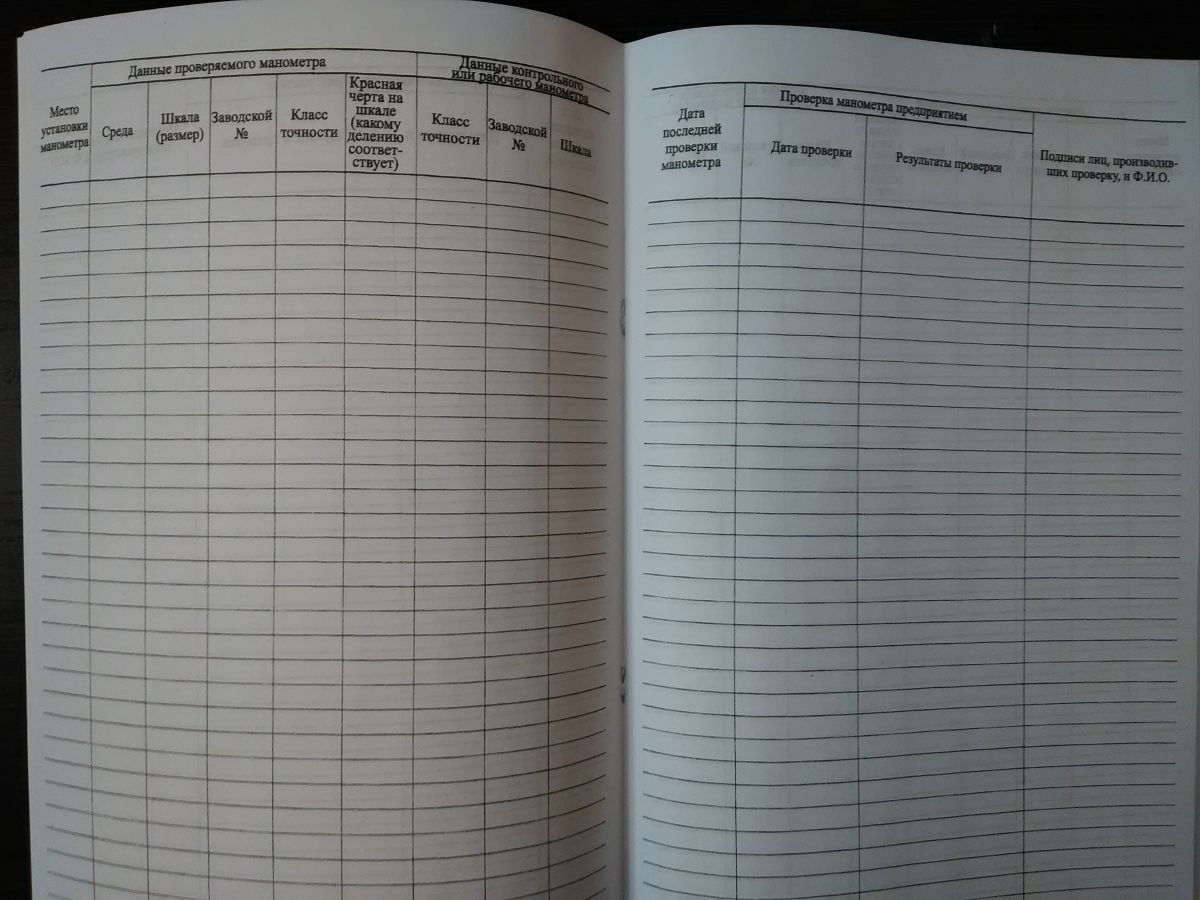 Журнал контрольных проверок манометров