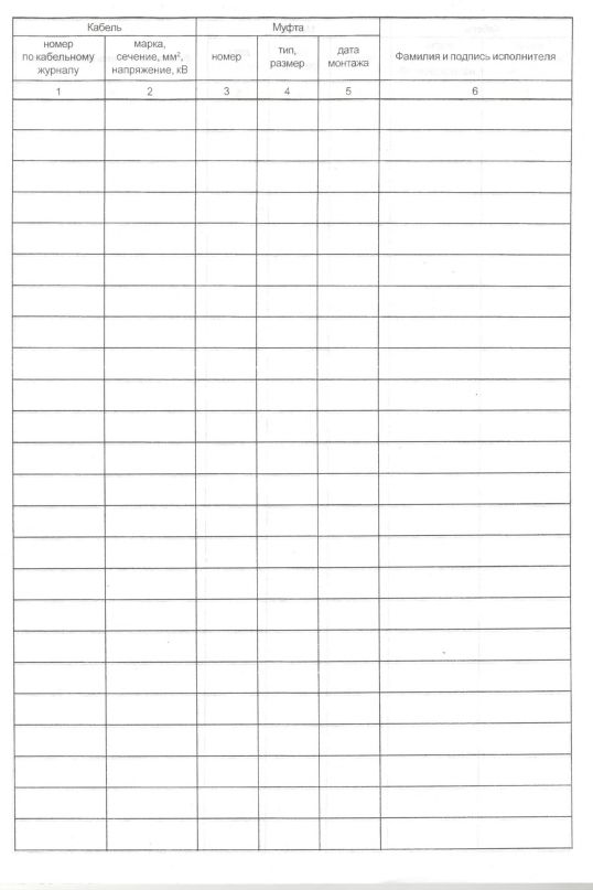 Журнал монтажа кабельных муфт напряжением выше 1000В
