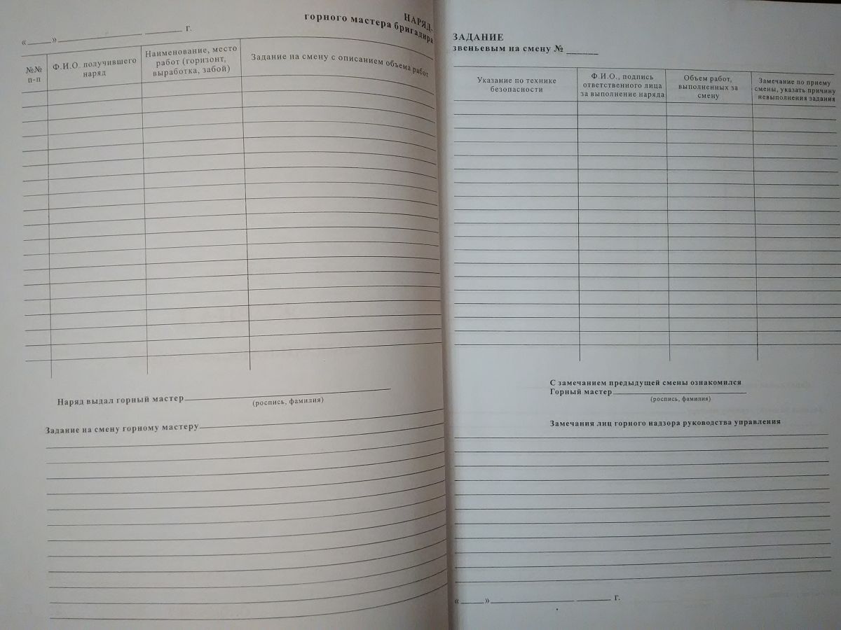 Журнал наряд-заданий для горных работ имеет стандартную форму и включает в себя все необходимые разделы и графы для заполнения.