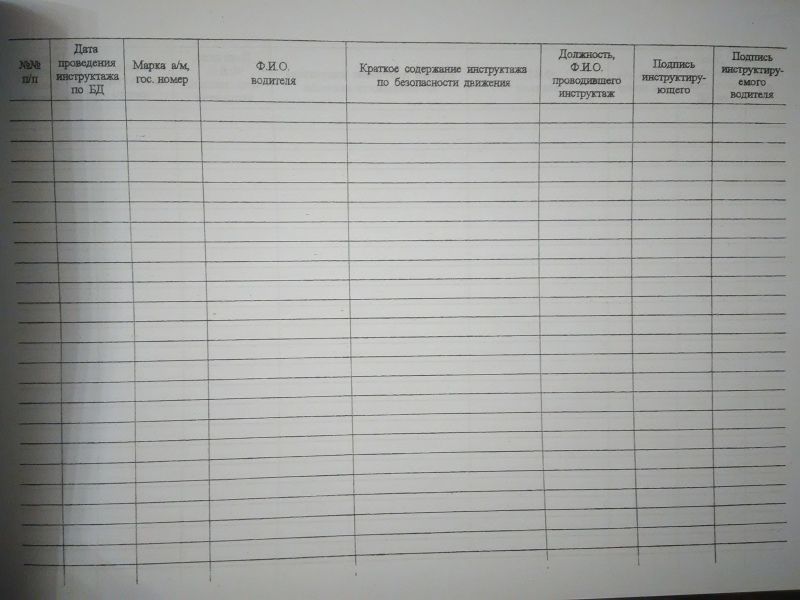 Журнал по проведению инструктажей с водительским составом по безопасности движения