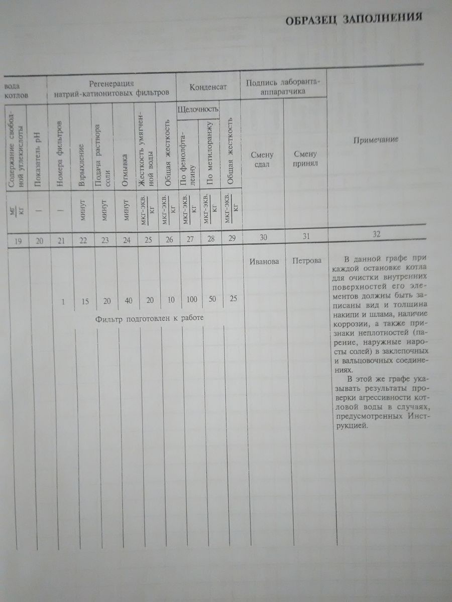 Этот журнал предназначен для учета и контроля процессов водоподготовки в котельной. Он содержит таблицы для записи данных о качестве воды, используемых химических реагентах и других параметрах, влияющих на работу котельной установки. В журнале предусмотрены графы для указания даты, времени, фамилии ответственного лица, а также места для подписи. Он помогает контролировать качество воды, предотвращать образование накипи и коррозии, а также обеспечивать соответствие требованиям нормативных документов. Использование этого журнала позволяет вести учет всех операций, связанных с водоподготовкой, и оперативно реагировать на любые отклонения от нормы. Это способствует повышению надежности и долговечности работы котельной установки, а также снижению затрат на ее обслуживание и ремонт.