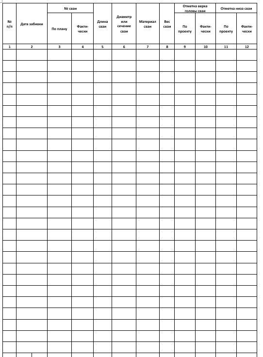 Форма журнала стандартизирована и соответствует требованиям нормативных документов, регламентирующих строительство и эксплуатацию сооружений. Документ необходим для последующего оформления исполнительной документации, сдачи объекта в эксплуатацию и получения разрешения на ввод здания или сооружения в эксплуатацию. Таким образом, использование журнала является обязательным этапом любого строительного проекта, связанного с применением свайных технологий.
