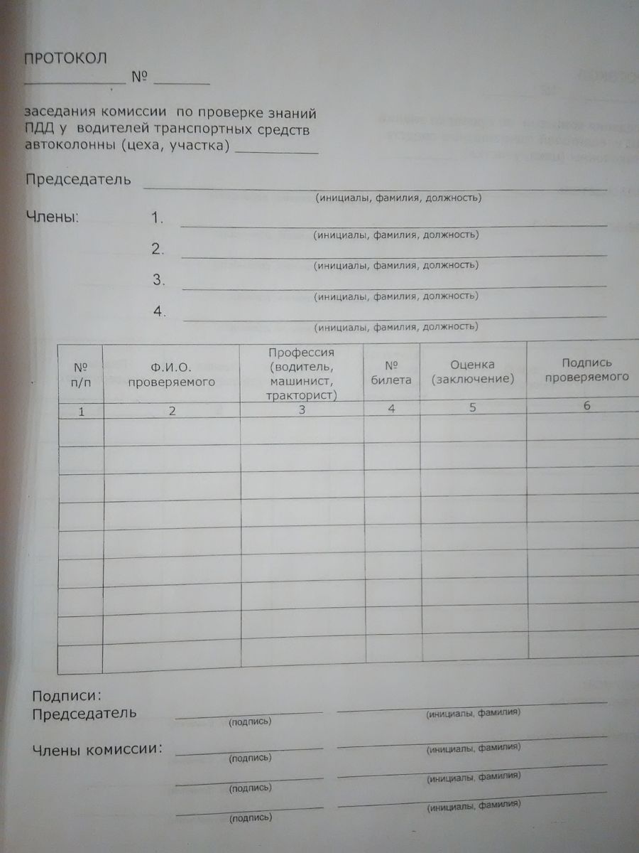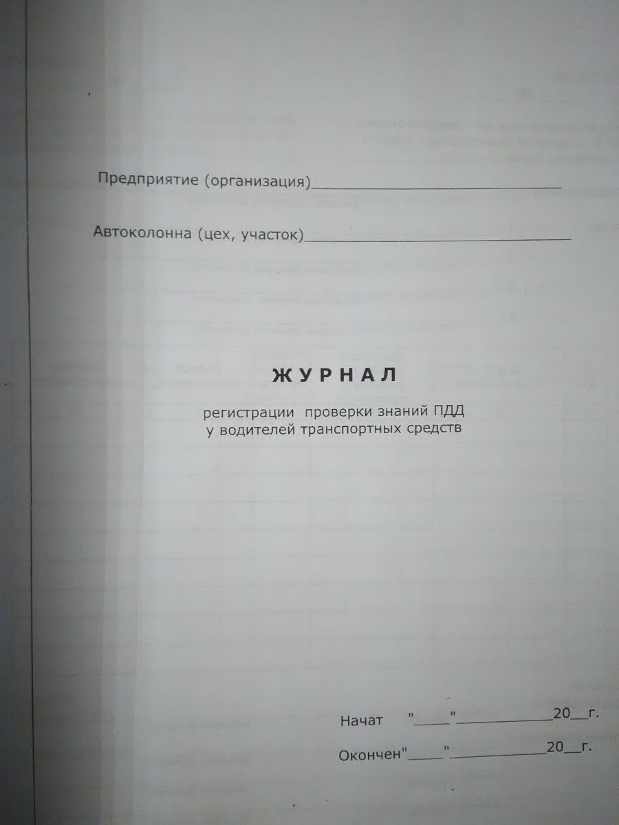 Журнал проверки знаний ПДД у водителей транспортных средств