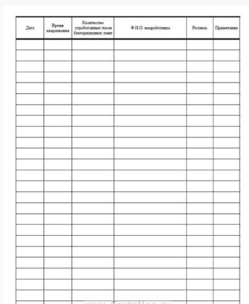 Этот журнал предназначен для регистрации и контроля работы бактерицидной лампы. Он является важным инструментом для обеспечения безопасности и эффективности использования бактерицидных ламп. В журнале фиксируются данные о времени включения и выключения лампы, а также о проведении технического обслуживания. Это позволяет отслеживать состояние лампы и своевременно заменять ее при необходимости. Журнал также может использоваться для контроля за соблюдением правил эксплуатации бактерицидных ламп. Он помогает предотвратить возможные риски для здоровья и безопасности персонала и пациентов. В журнале предусмотрены поля для записи даты, времени, фамилии и инициалов ответственного лица, а также для отметок о проведении технического обслуживания. Это обеспечивает прозрачность и ответственность за работу с бактерицидными лампами.