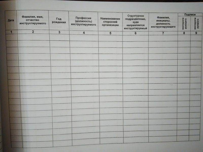 Журнал регистрации инструктажа на рабочем месте для сторонних сотрудников