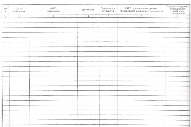 ЖУРНАЛ регистрации измерения температуры сотрудников для профилактики коронавируса