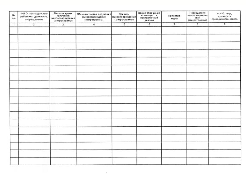 Журнал регистрации микроповреждений (микротравм) работников