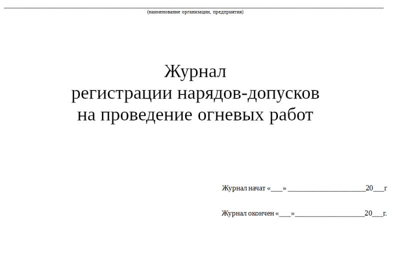 Журнал регистрации нарядов-допусков на проведение огневых работ