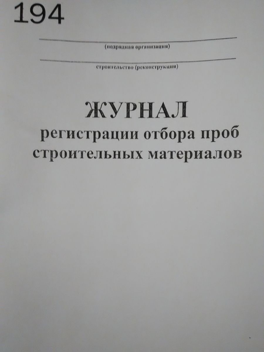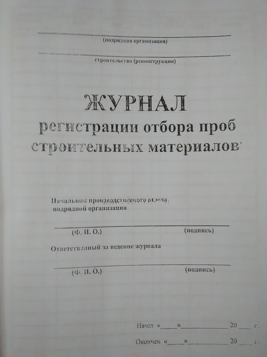 Журнал регистрации отбора проб строительных материалов