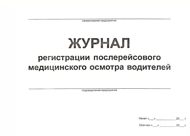 Журнал регистрации послерейсовых, послесменных медицинских осмотров водителей.