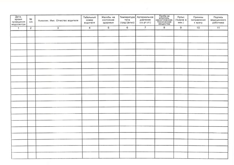 Журнал регистрации предрейсовых, предсменных медицинских осмотров водителей.