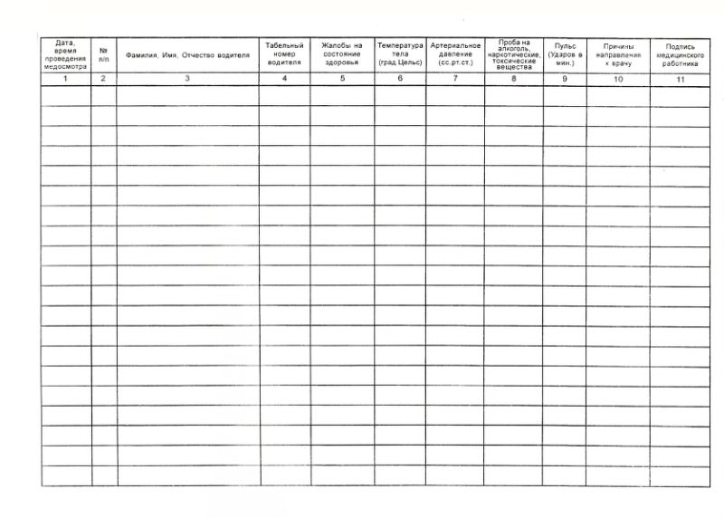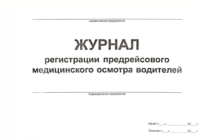 Журнал регистрации предрейсовых, предсменных медицинских осмотров водителей.