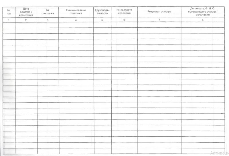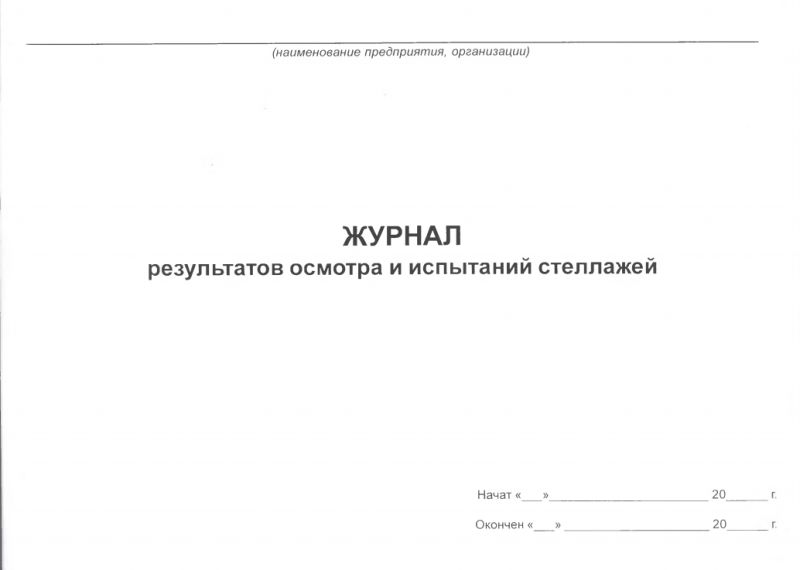 Журнал результатов осмотра и испытания стеллажей