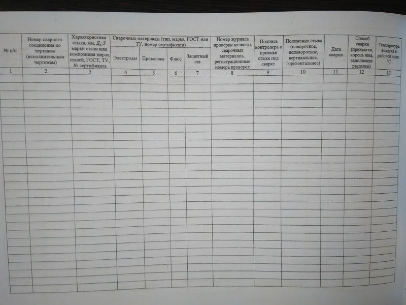 Журнал сварочных работ, ВСН 478-86, форма 5