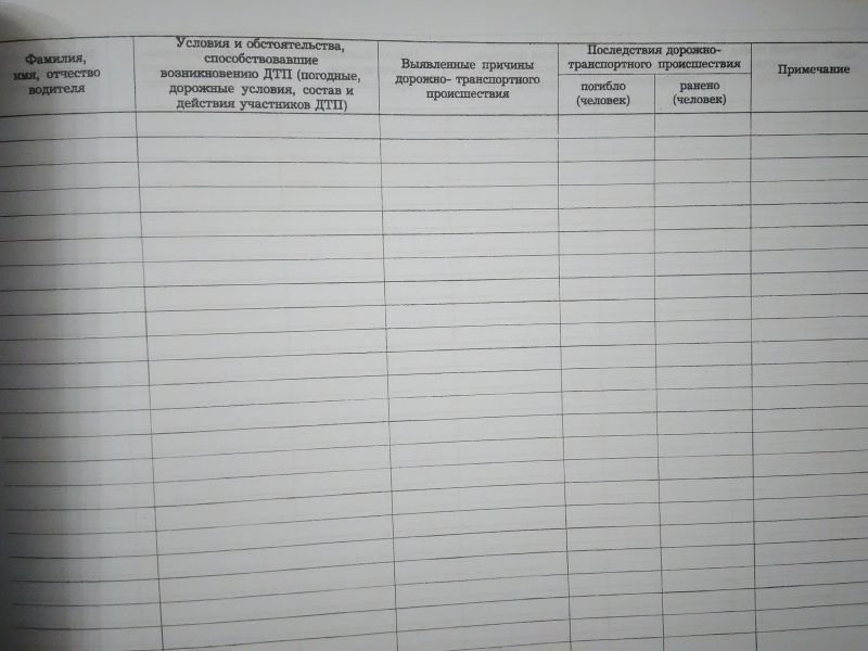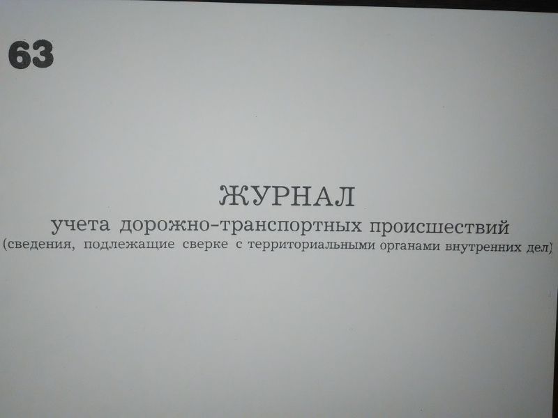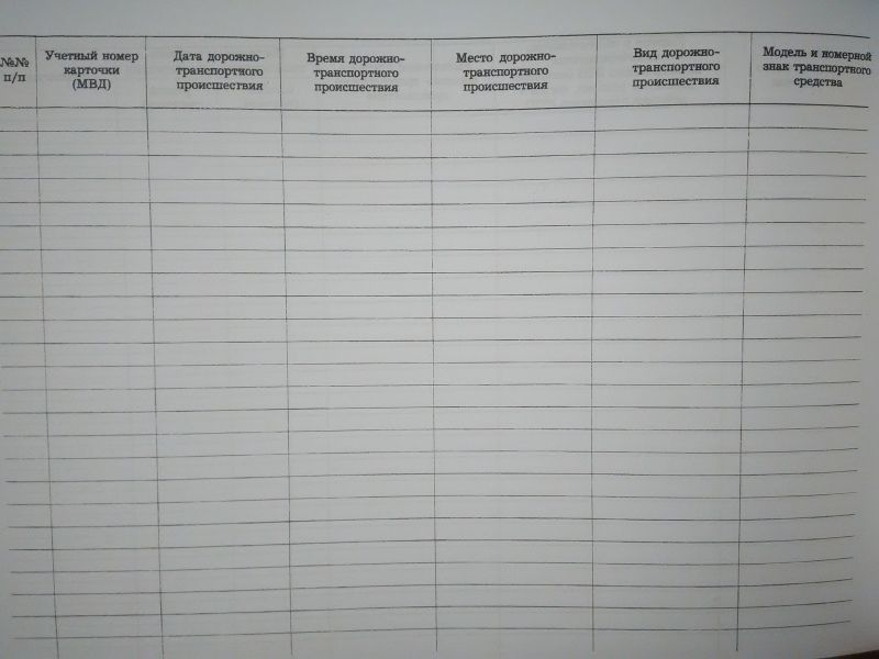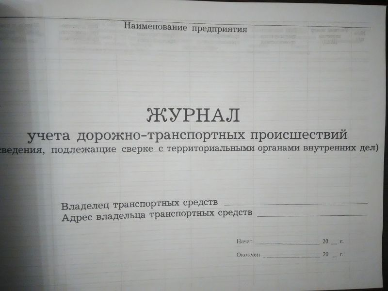 Журнал учета ДТП (сведения подлежащие сверке с ОВД)