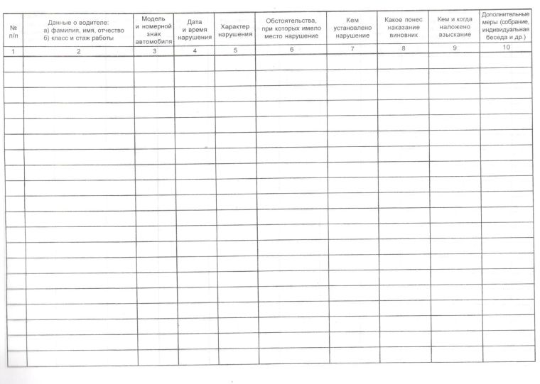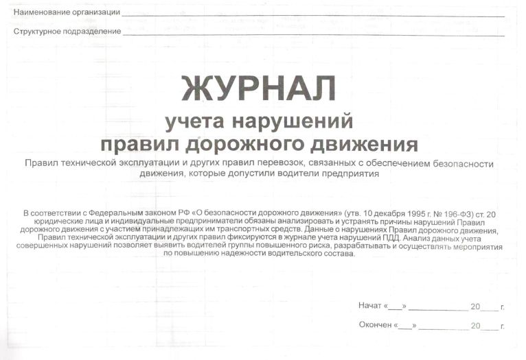 Журнал учета нарушений правил дорожного движения водителями