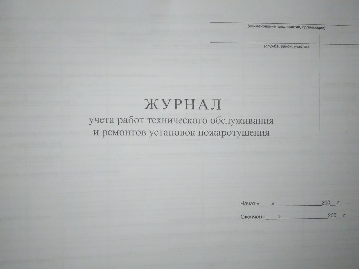 Журнал учета работ тех обслуж-я и ремонтов установок пожаротушения