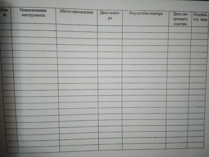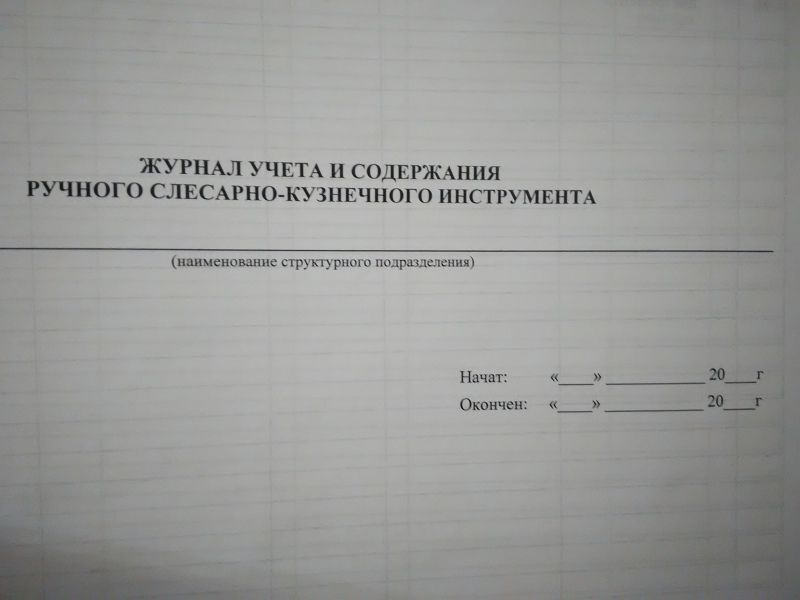 Журнал учета содержания ручного слесарно-кузнечного инструмента
