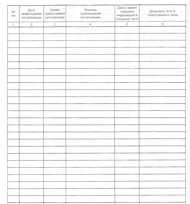 Журнал учета срабатывания пожарной сигнализации