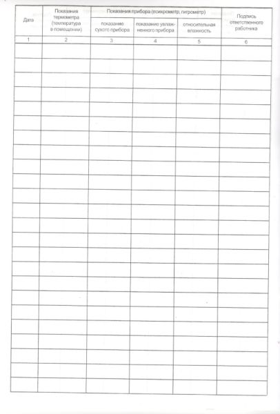 Журнал учета температурного режима и относительной влажности воздуха в помещении