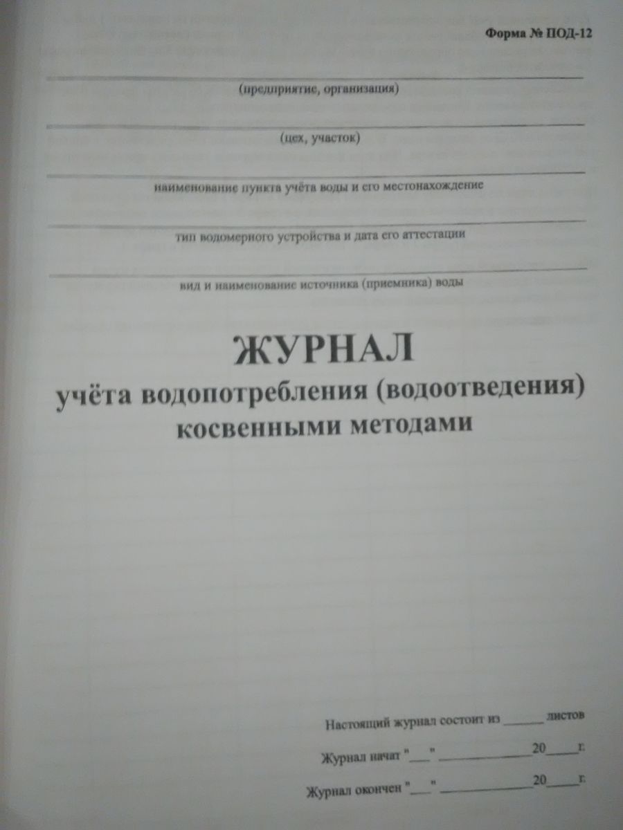 Журнал учета водопотребления (водоотведения) косвенными методами