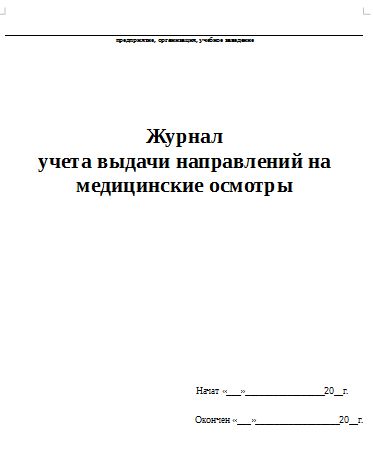 Этот журнал учета выдачи направлений на медицинские осмотры является незаменимым инструментом для организаций, которые заботятся о здоровье своих сотрудников. Он позволяет систематизировать процесс выдачи направлений и контролировать прохождение медицинских осмотров. В журнале предусмотрены поля для заполнения информации о сотруднике, дате выдачи направления, виде медицинского осмотра и результатах. Это обеспечивает прозрачность и удобство в управлении процессом. Он имеет удобный формат, позволяющий легко размещать его на рабочем столе или в шкафу. Этот журнал станет надежным помощником в организации медицинских осмотров и соблюдении требований законодательства.