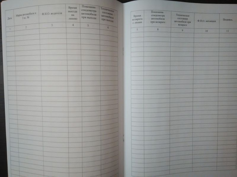 Журнал учета выхода автомобиля на линию и возврата с линии.