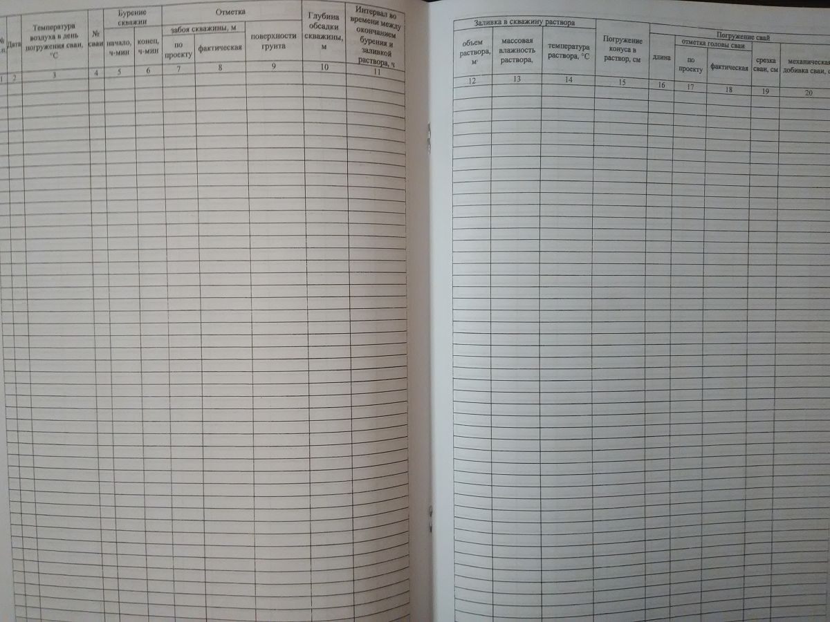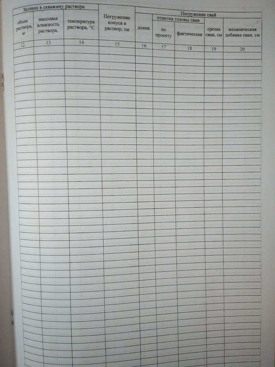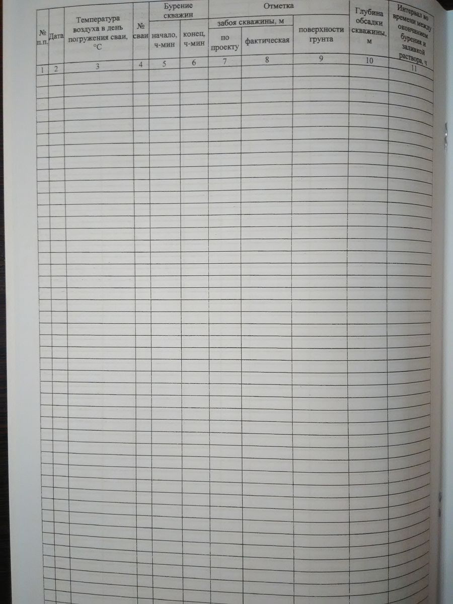 Журнал установки буроопускных свай