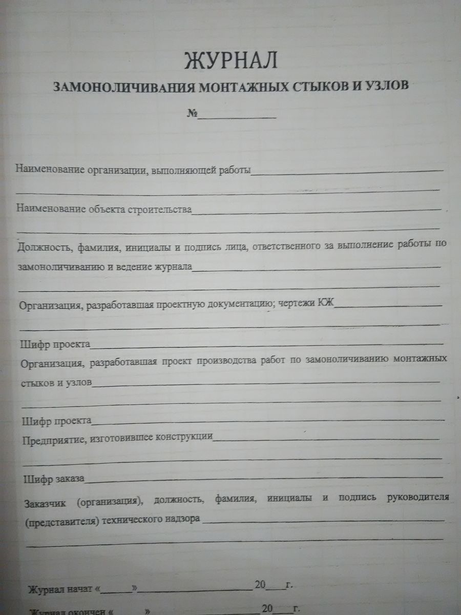 Журнал замоноличивания монтажных стыков и узлов ( к СниПу 3.01.01)