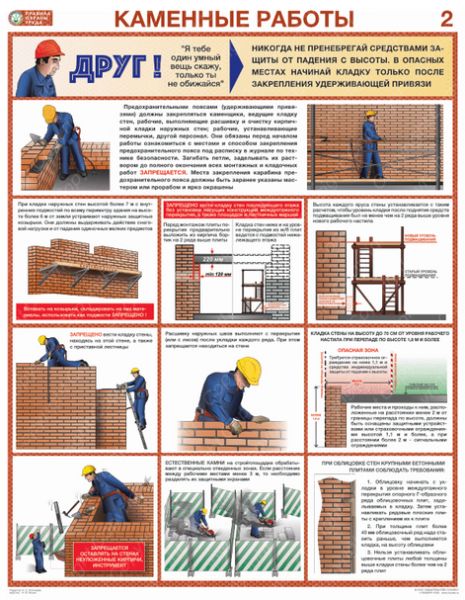 Этот плакат формата А2 посвящен каменным работам и является отличным учебным пособием для студентов и специалистов в области строительства. На плакате изображены различные этапы каменных работ, начиная от подготовки материалов и заканчивая укладкой кирпича. В верхней части плаката представлена общая схема каменных работ, которая включает в себя все основные этапы процесса. Под схемой находятся подробные иллюстрации каждого этапа, сопровождаемые краткими пояснениями. На плакате также изображены различные инструменты и материалы, используемые в каменных работах. Это позволяет лучше понять, какие инструменты необходимы для выполнения той или иной операции. Плакат выполнен в ярких цветах, что делает его привлекательным и удобным для восприятия. Текст на плакате написан крупным шрифтом, что облегчает чтение даже на расстоянии. Этот плакат станет отличным дополнением к учебным материалам по каменным работам и поможет лучше понять и освоить эту важную область строительства.