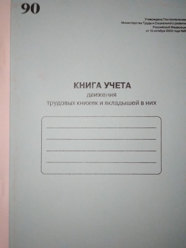 Книга учета движения трудовых книжек и вкладышей в них