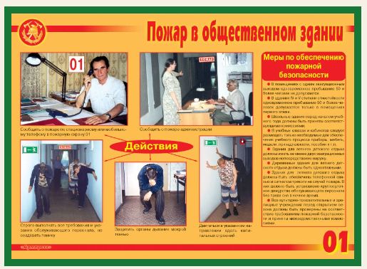 Комплект плакатов «Действия при пожаре» 9 плакатов. формат А3