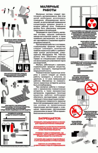 Этот плакат формата А2 предназначен для обучения малярным работам. На нем изображены различные инструменты и материалы, используемые в малярном деле, а также пошаговые инструкции по выполнению различных видов малярных работ. Плакат содержит изображения кистей, валиков, шпателей, лотков для краски и других необходимых инструментов. Также на нем показаны различные виды красок и их применение. Кроме того, плакат содержит информацию о подготовке поверхности к покраске, нанесении грунтовки и финишного слоя краски. Этот плакат будет полезен как начинающим малярам, так и опытным специалистам, которые хотят освежить свои знания или узнать что-то новое. Плакат выполнен в удобном формате А2, что позволяет разместить его на стене или столе для удобства использования. Этот плакат станет отличным помощником в обучении малярным работам и поможет вам освоить все тонкости этого ремесла.