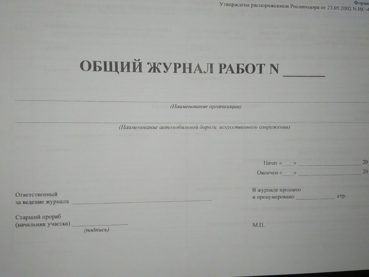 Общий журнал работ при строительстве автомобильных дорог