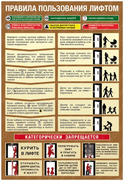 Правила пользования лифтом 380х200 новый. Плакат на самоклейке