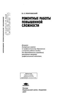 Ремонтные работы повышенной сложности (1-е изд.) учеб. пособие 2007г