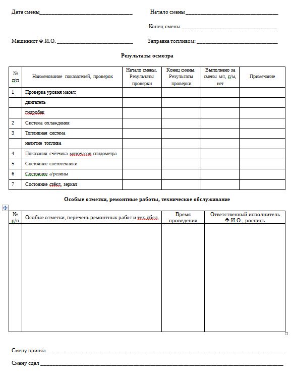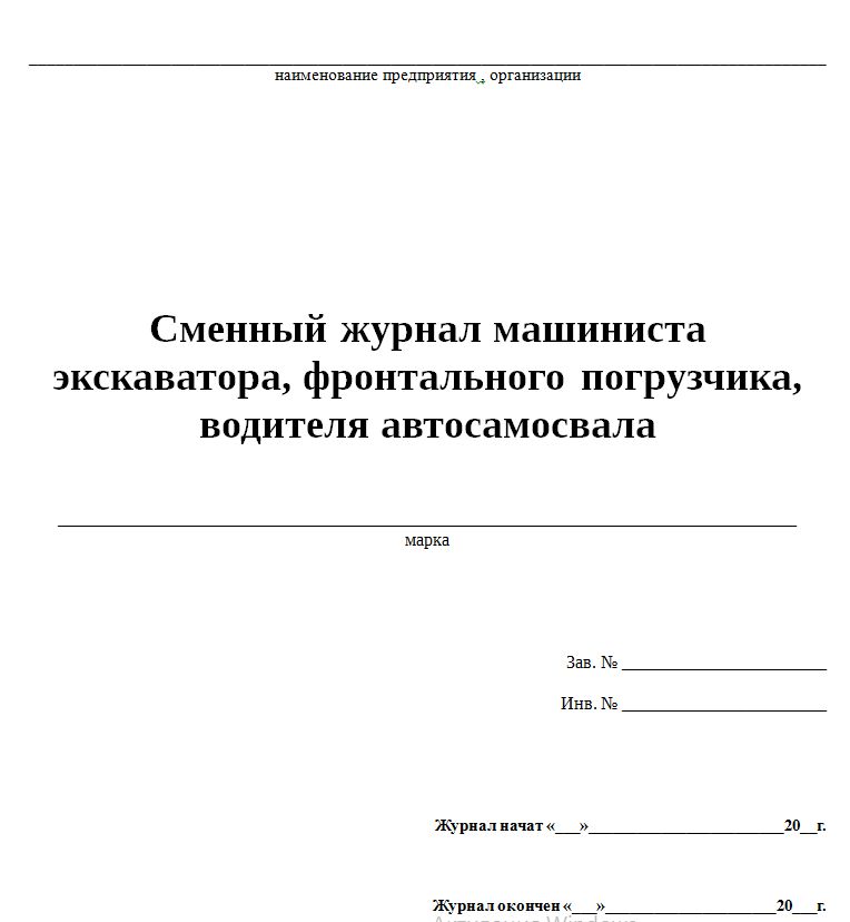 Сменный журнал машиниста экскаватора, фронтального погрузчика, водителя автосамосвала