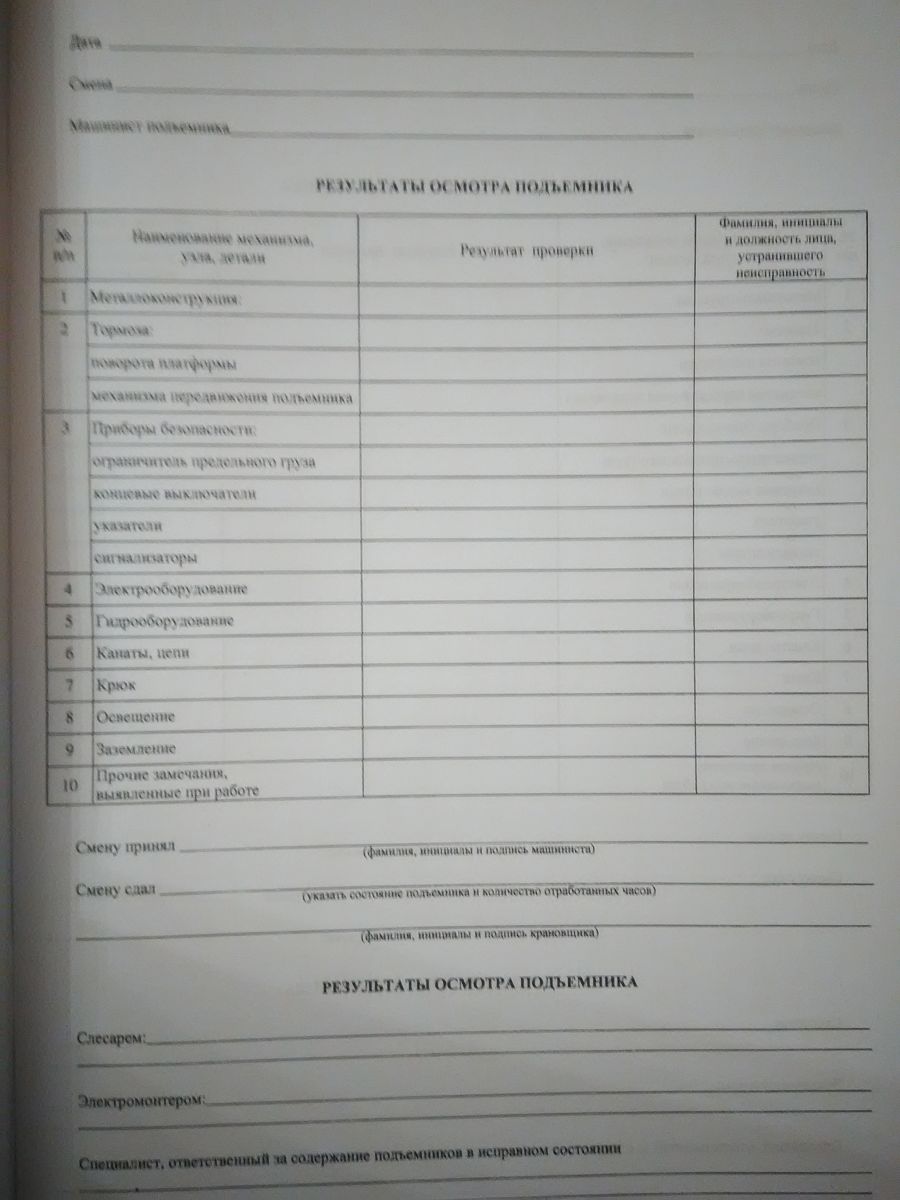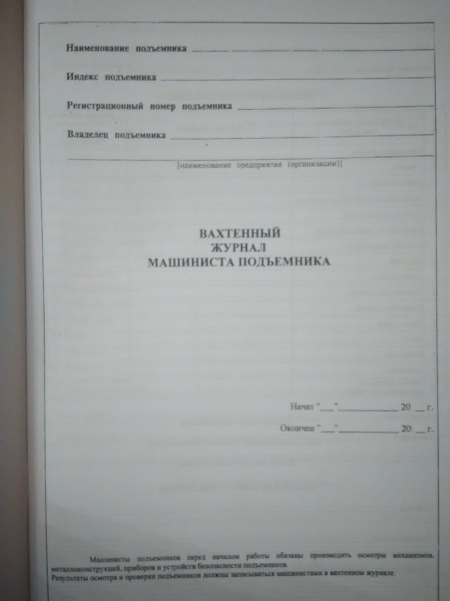 Вахтенный журнал машиниста подъемника